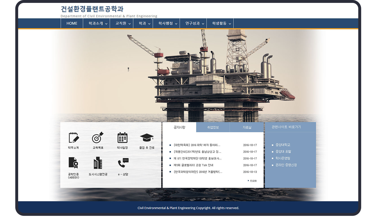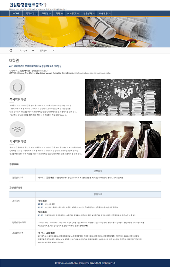 중앙대학교 건설환경플랜트공학과 웹사이트를 리뉴얼하였습니다.