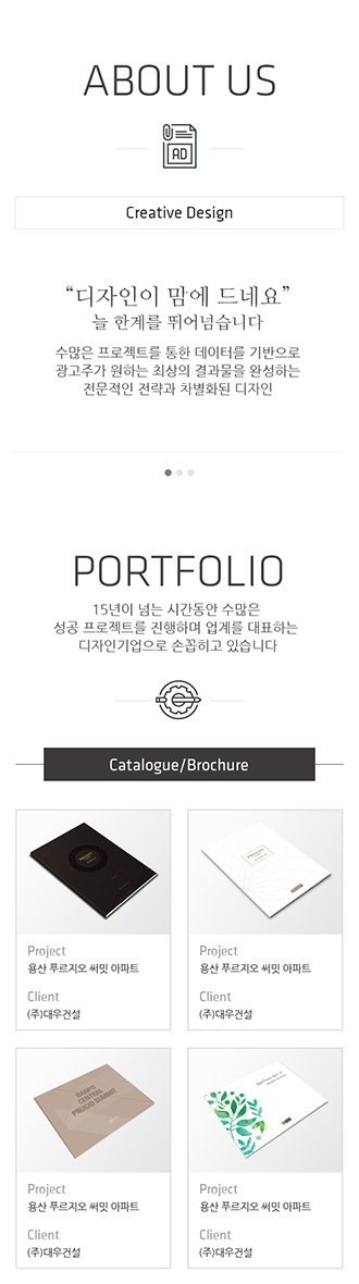 포트폴리오를 팝업 형태로 노출시키며 슬라이드 기능을 통해 많은 이미지를 고객의 보여줄 수 있었습니다.