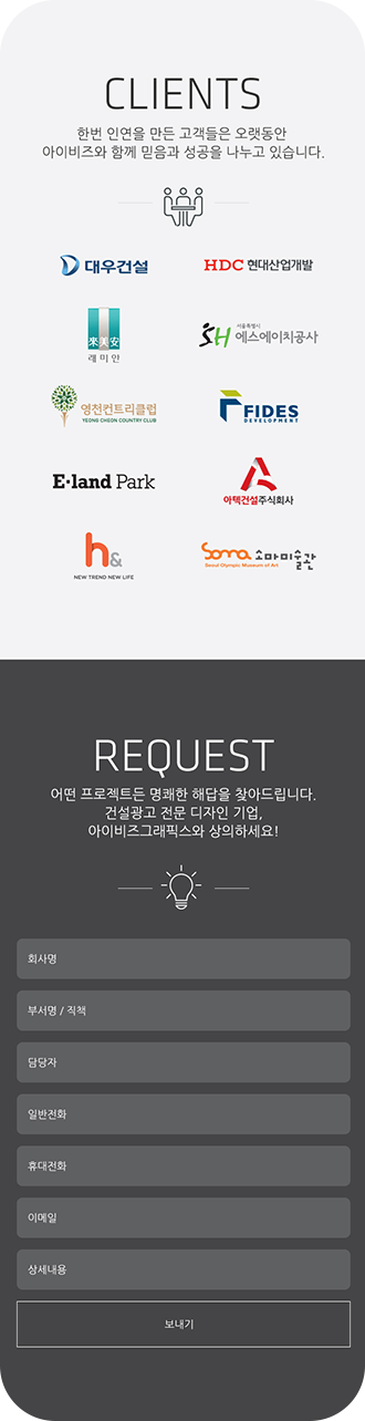 건설 광고의 새로운 패러다임을 선도하는 IBIZ GRAPHICS 웹사이트를 리뉴얼하였습니다.