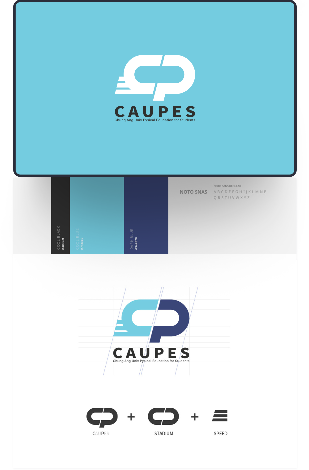 카우페스의 알파벳 C와 P의 활용과 스타디움 그리고 스피드 3가지의 조합을 통하여 로고가 완성도를 높이고,