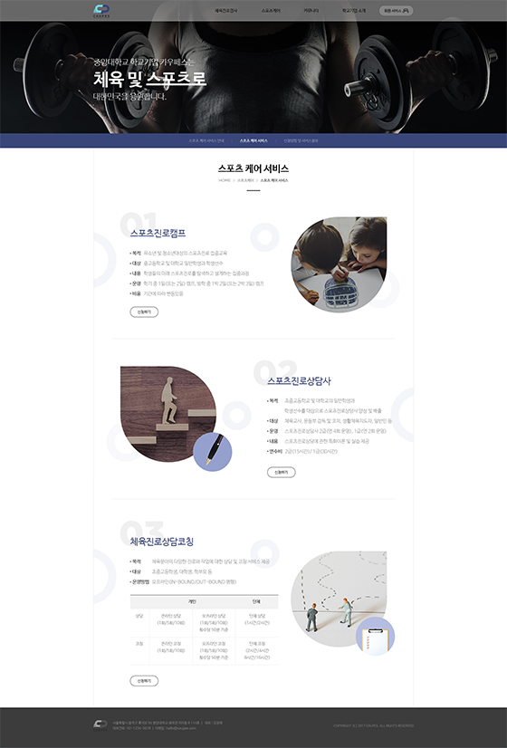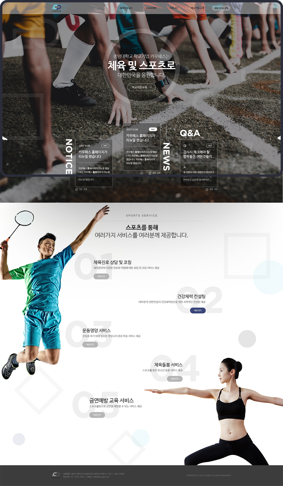 스포츠 관련 다양한 서비스들을 사용자가 쉽게 접할 수 있도록 웹사이트를 설계하였습니다.