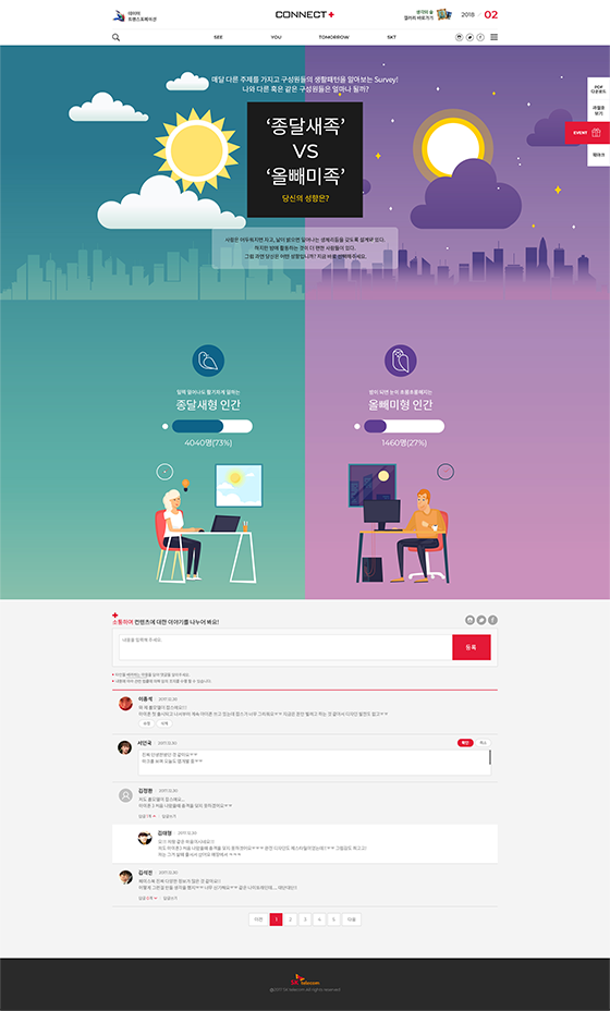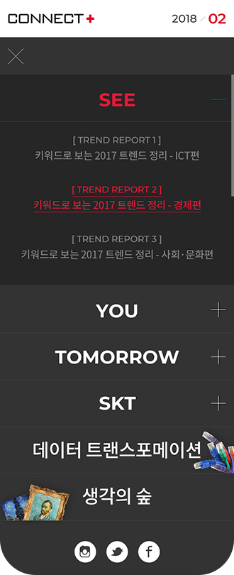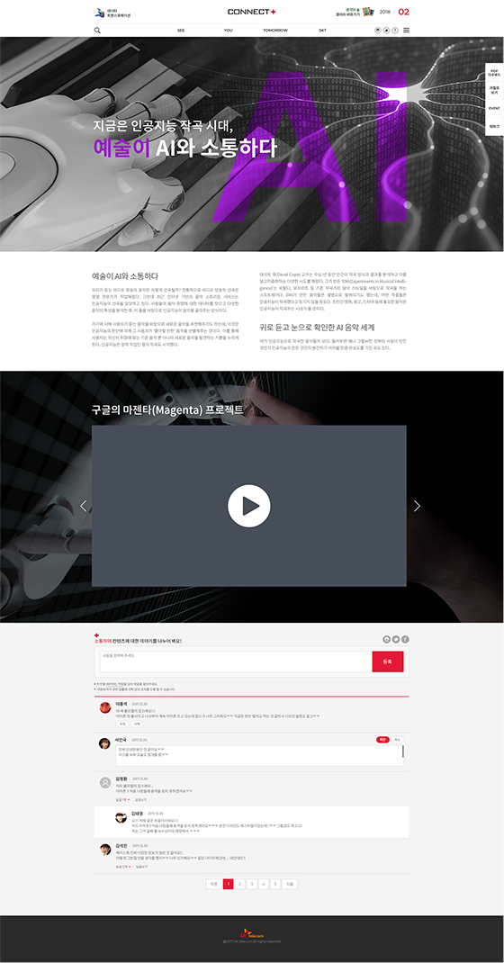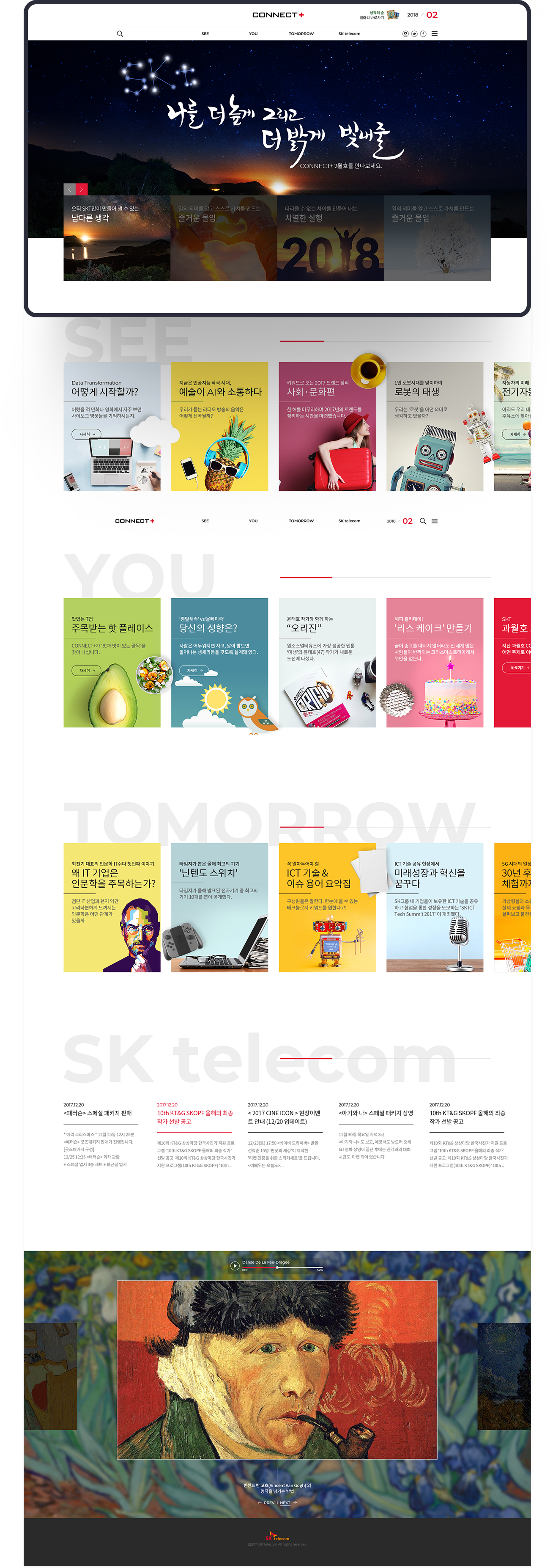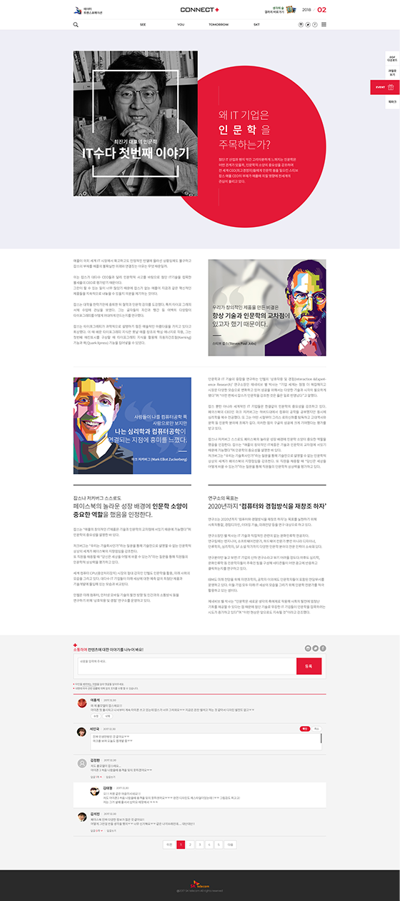 대한민국의 내일을 여는 기술 SK telecom의 웹진 Connect+ 웹사이트를 리뉴얼 제안하였습니다.