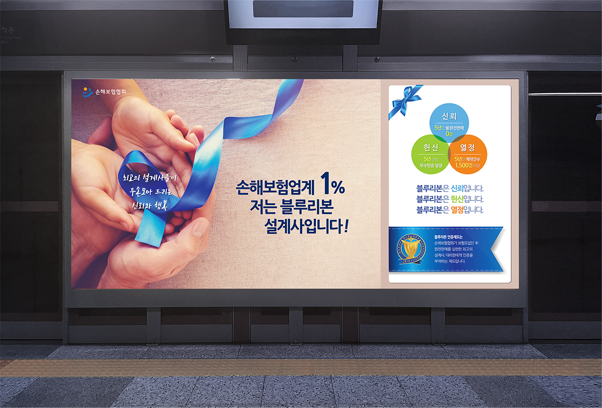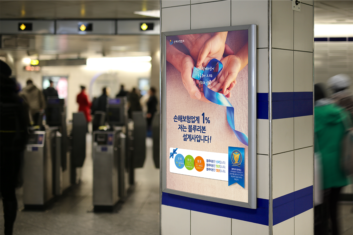 손해보험협회 '블루리본'에 대한 지하철 스크린 광고