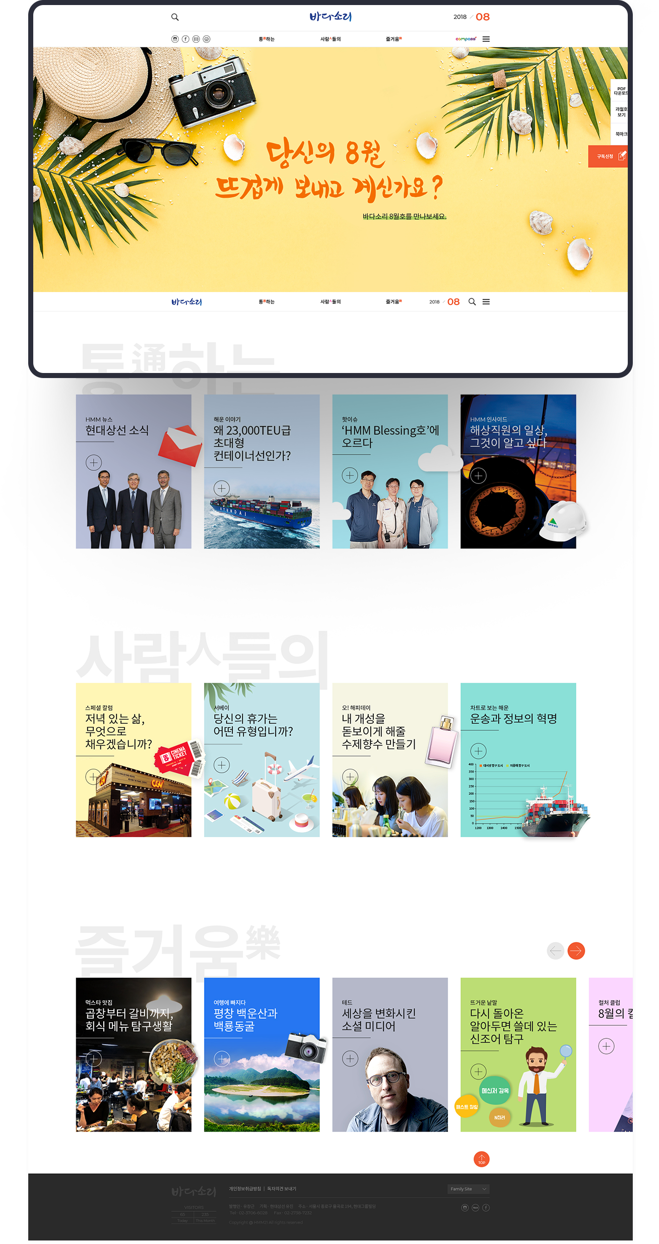 종합 해운 물류기업인 현대상선의 웹진 바다소리를 리뉴얼하였습니다.