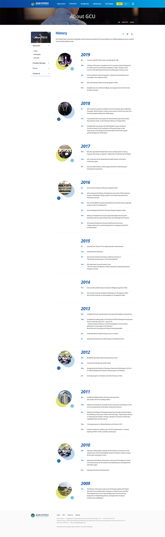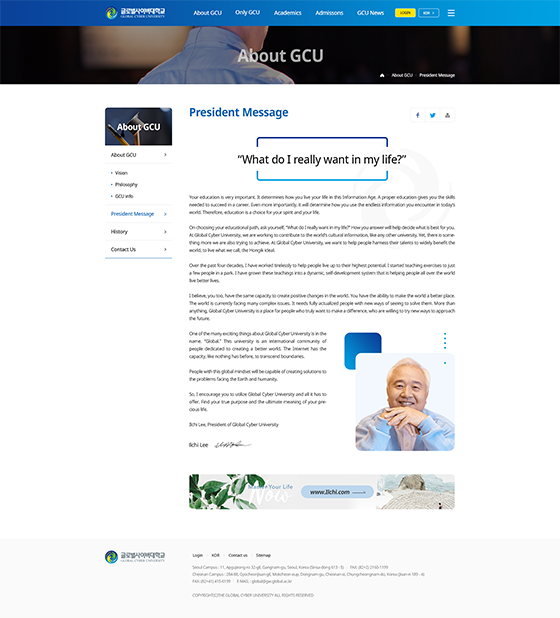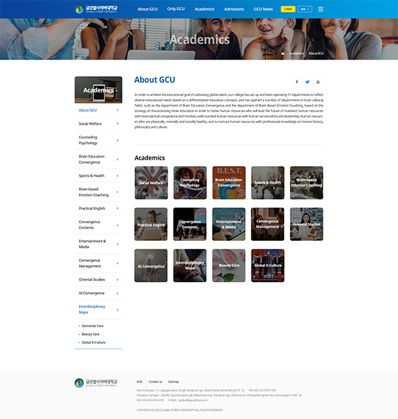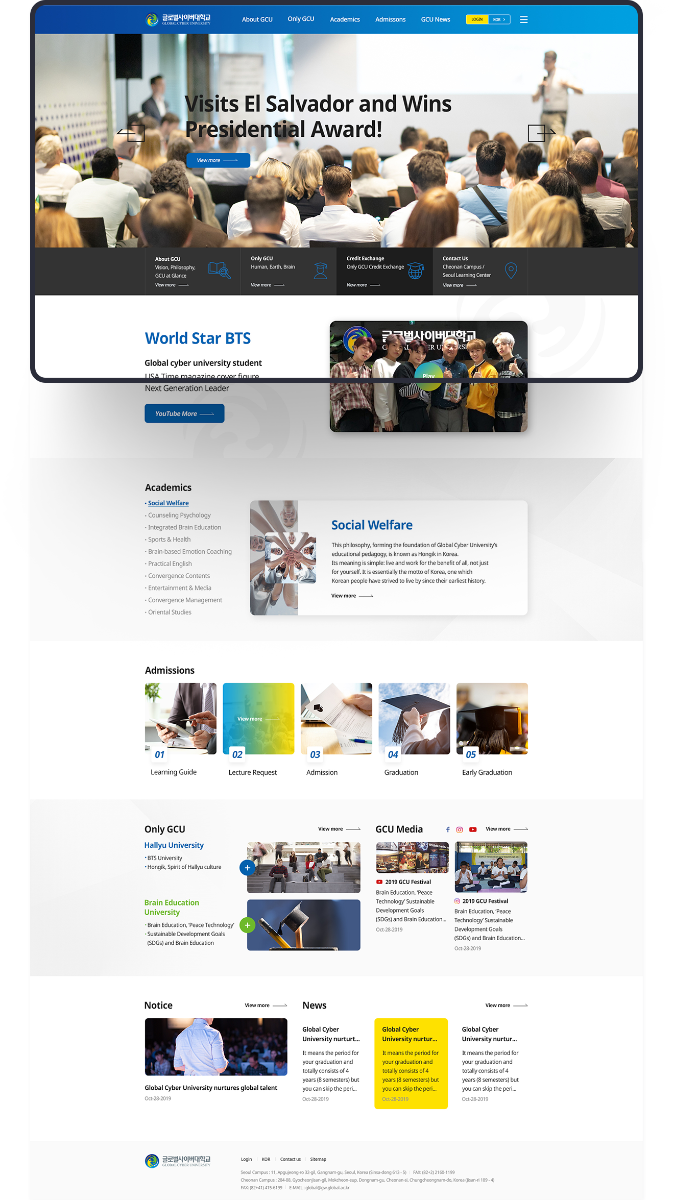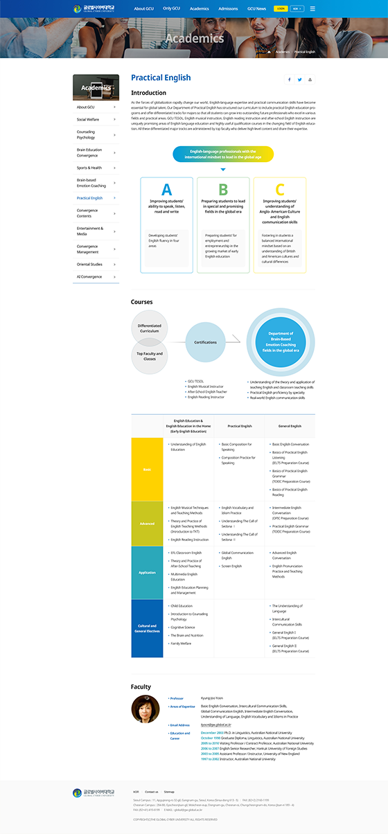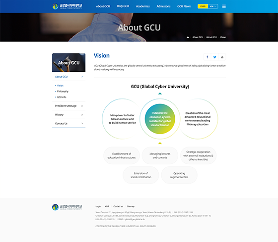 한국의 가치를 세계에 알리고 글로벌 홍익인재를 양성하는 글로벌사이버대학교 영문 홈페이지를 리뉴얼하였습니다.
