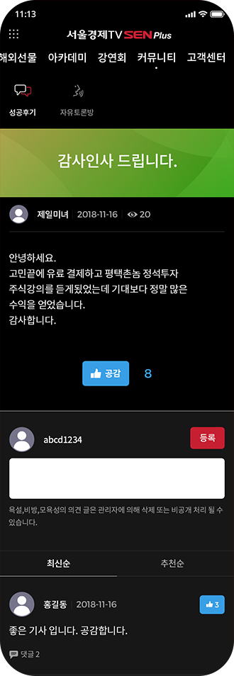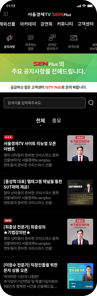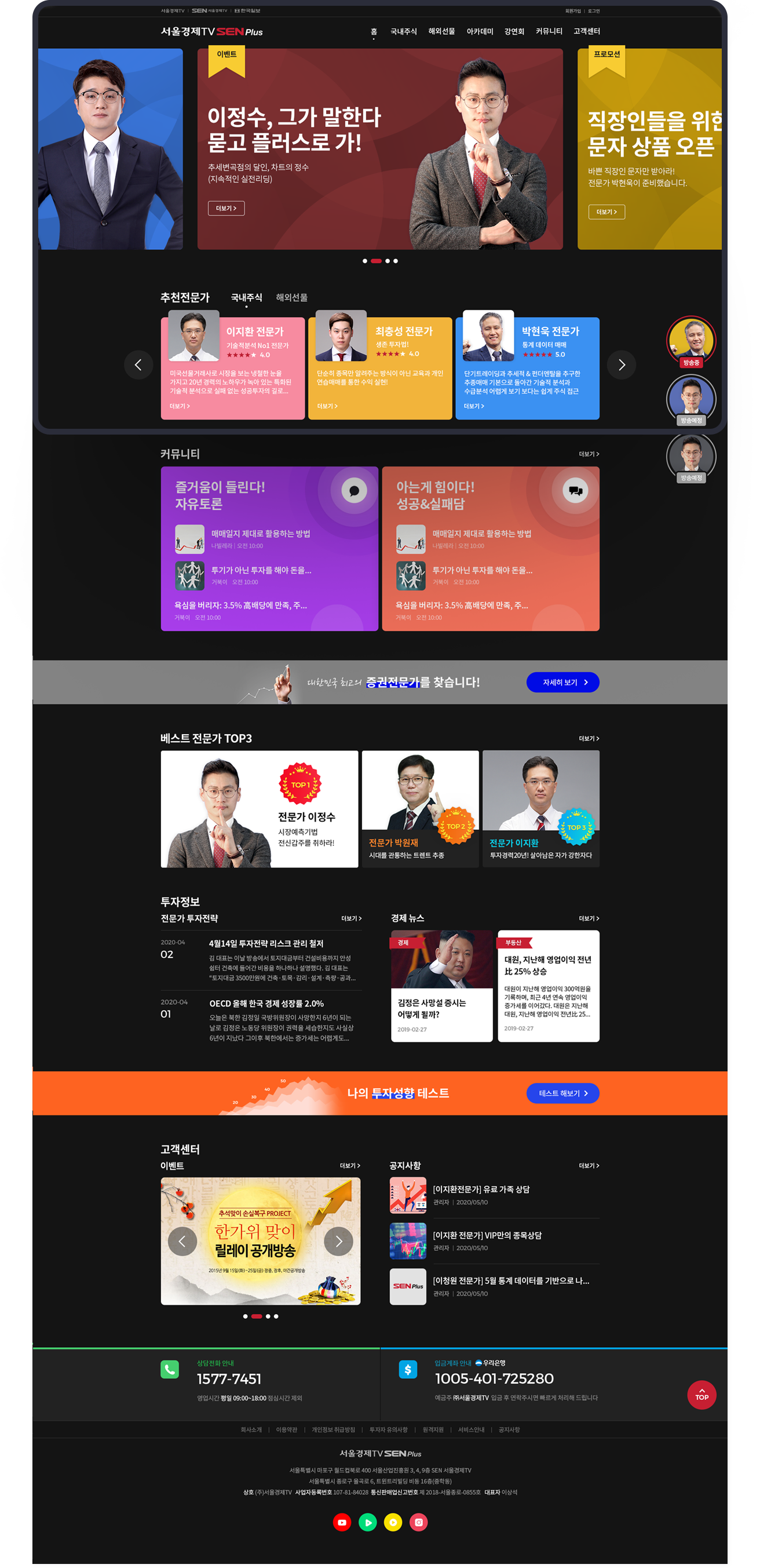 서울경제TV의 증권투자 라이브 방송 SEN Plus 웹사이트 개편을 수주하여 진행중입니다.